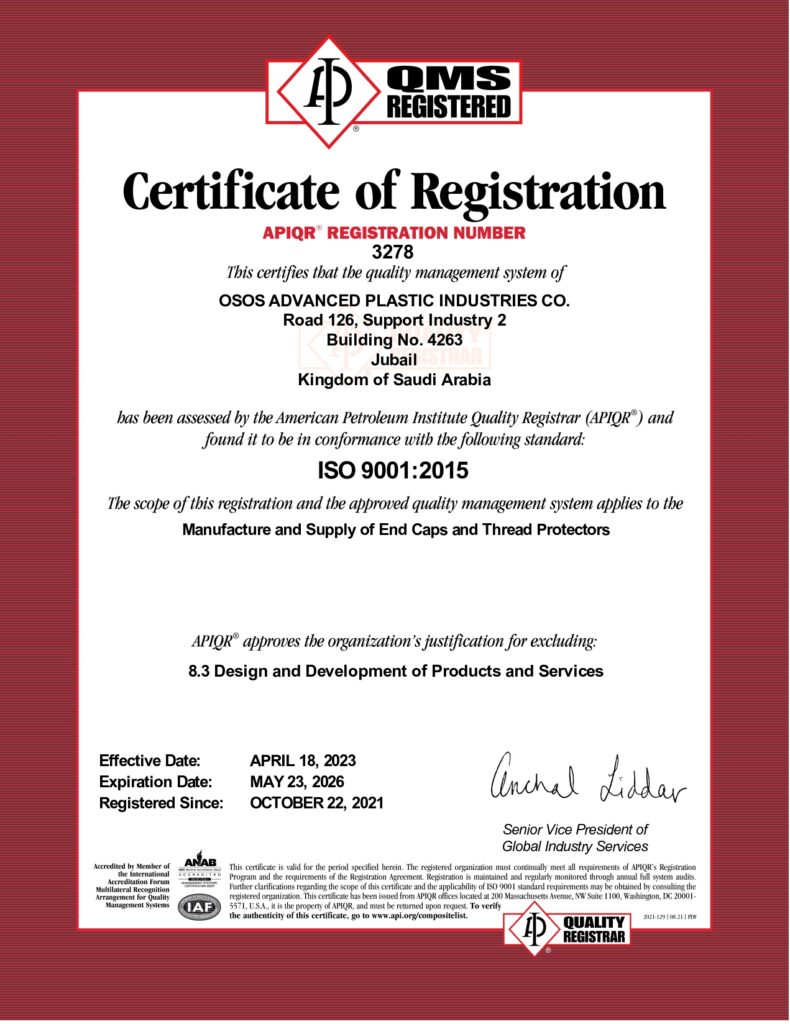 OSOS Advanced Plastic Industries Company (OSPIN) is first plant in the Kingdom of Saudi Arabia, Gulf and in the MENA region to manufacture and supply Plastic, Composite Thread Protector and various types of End Caps used for protection of tubular pipes during transportation to end-users from their manufacturing facilities. As of date, Plastic & Composite Thread Protectors are being imported from different parts of the world.